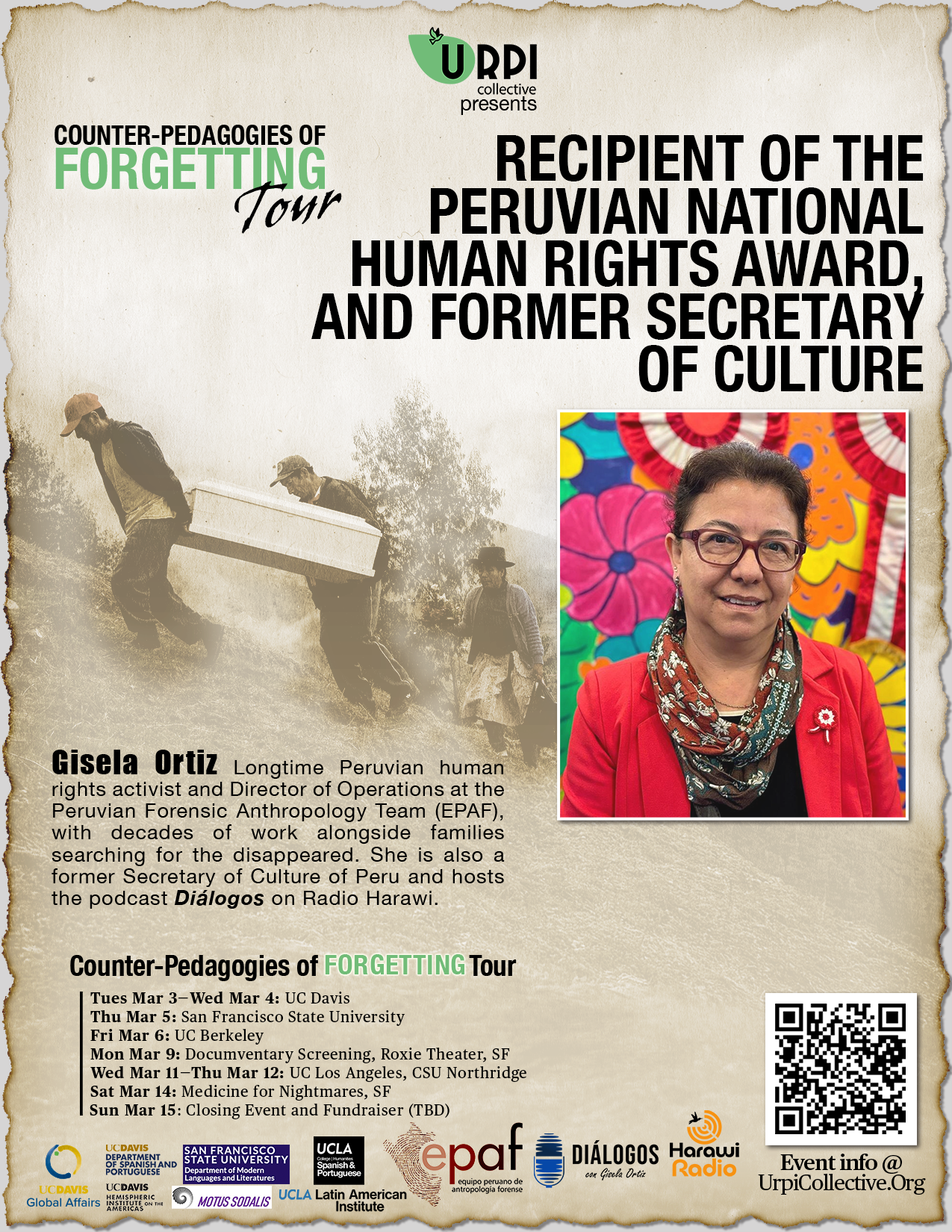 A human rights activist for more than three decades, Ortiz represents the families in the La Cantuta case. She is a two-time recipient of the Ángel Escobar Jurado National Human Rights Prize, awarded by Peru’s National Human Rights Coordinating Committee (Coordinadora Nacional de Derechos Humanos).